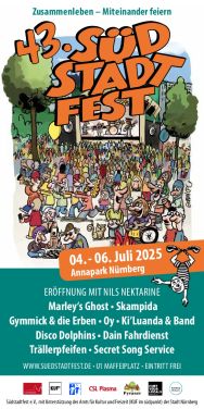 Das Südstadtfest ist Nürnbergs größtes Stadtteilfest. Um ein tolles Bühnenprogramm bieten zu können, alle Unkosten des Festes zu tragen und es ausreichend zu bewerben sind wir dringend auf die Hilfe von Sponsoren und Förderen angewiesen.